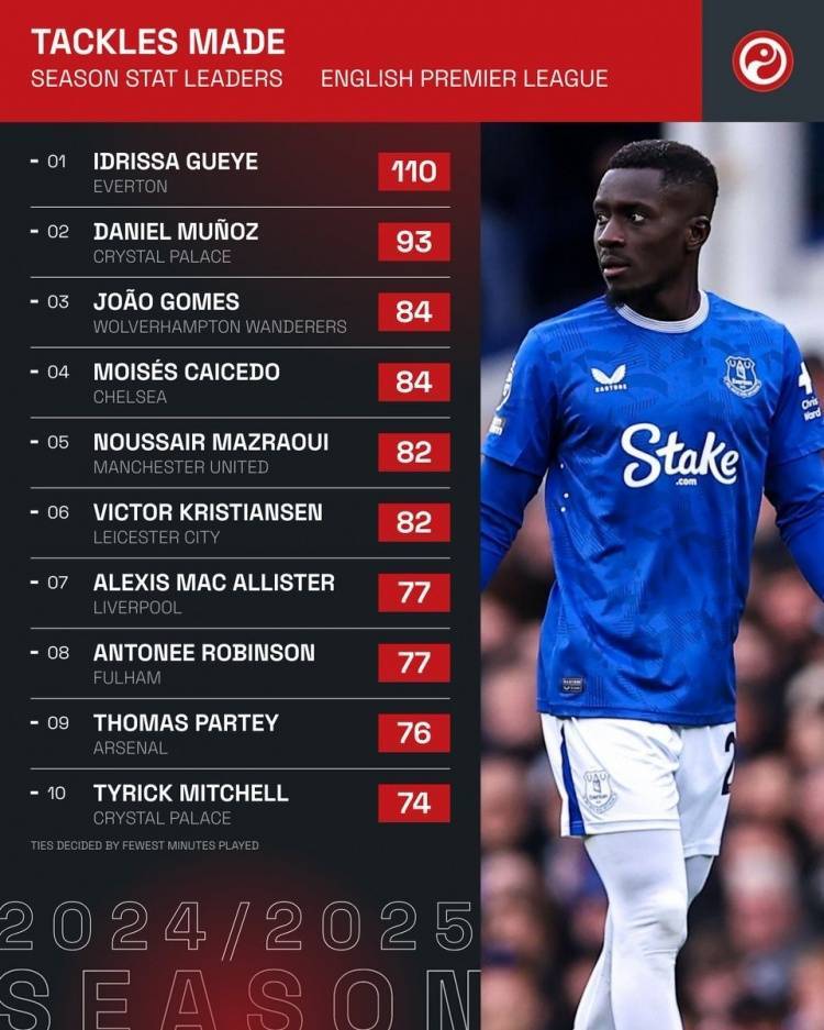 直播吧3月18日讯 国家队比赛周到来,英超也暂时告一段落,squakwa统计了本赛季英超成功抢断情况,盖耶独自领跑。